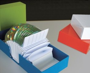Die GrolliBox der Buchbinderei Grollimund AG konnte das im Internet abstimmende Publikum überzeugen. Die unscheinbare Box enthält 20 Archivtaschen zur Aufnahme von CDs oder DVDs (Bild rechts). Beim Öffnen ordnen sich die Taschen fächerförmig an. Die Datenträger lassen sich leicht einfügen und sind sicher vor Kratzern und Verschmutzungen. Mit den numerierten Taschen lässt sich ein platzsparendes Aufbewahrungssystem aufbauen: Ordnung mit Spass.