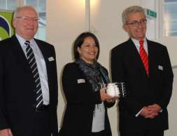 Für eine hohe Dichtigkeit wurde von Hoffmann Neopac AG die Ricola-FreshPack-Dose entwickelt, wobei die gekonnt umgesetzte Kombination aller Details hohe Anforderungen erfüllt. Dosenrand und Deckel weisen keinerlei scharfe Stellen auf, da die Ränder gestaucht und eingefalzt sind. Die hinteren Seitenteile des Deckels sind abgeschrägt, was eine Vollöffnung der Dose erlaubt. Eine präzise gearbeitete Biskuitdose, die exakt gefalzt ist, präsentierte Andreas Kopp AG mit der Jubiläums-Bretzeli-Dose für Kambly. Es wurde sorgfältig darauf geachtet, dass keine Materialdoppelungen sichtbar werden. Die Scharfkantigkeit wurde dadurch vermieden, dass der obere Dosenrand nach innen gerollt, der Boden eingerollt und der Deckelrand nach innen gefalzt ist. Das Bild links zeigt Andreas Kopp und Monica Malonni-Kopp von der Geschäftsleitung der Andreas Kopp AG mit Rudolf Winzenried, Generalsekretär der Kambly SA (v.l.n.r.) bei der Preisverleihung. Eine clever konstruierte Medizinverpackung wurde von Synthes GmbH präsentiert: Das Couvert für Beutel garantiert ein einfaches und schnelles Handling und ermöglicht – ohne das Risiko einer Verunreinigung – die Trennung von Verpackungsmaterial im Medizinalbereich. Für minimalen Energieaufwand für Fertiggerichte hat Wipf AG ein neues Verpackungskonzept für aufwärmbare Poulets entwickelt. Mit Einhaltung aller Vorgaben für Hygiene und Bewahrung von Aroma und Textur des Füllgutes lässt sich dieses Verpackungssystem für frische Poulets als Fertiggericht einsetzen. Die Gestaltung des Beutels mit transparenten Seitenbereichen ist vorteilhaft für die Erkennung und Begutachtung des Füllguts. Gesamthaft überzeugt die clevere Einfachheit der Knick-Öffnung für Kartonbliss-System der Wolfensberger AG (Bild oben rechts). Das umständliche Öffnen wie bei der bisherigen Verpackungslösung für SIGG-Bottles-Ersatzteile wird komplett umgangen. Konsumenten entnehmen das Produkt mit einem einfachen Abknicken der Karton-Blisterkarte. Das Bild unter den ausgezeichneten Produkten zeigt die Moderatorin der Prämierungsfeier Katharina Deuber (Cash TV) zusammen mit (v.l.n.r.) Udo Guggisberg, Einkaufsleiter der Auftraggeberfirma SIGG AG, Entwickler Bruno Wolfensberger, Geschäftsführer der Wolfensberger AG und Andreas Keller, Geschäftsführer der Produktionsfirma Pawi Verpackungen AG, welche an der Entwicklung mitbeteiligt war.