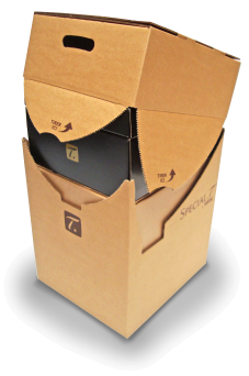 Eine besondere Art der Verpackung stellt das Shipping Box Special.T der Smurfit Kappa Swisswell AG dar (Bild links). Die hohen Anforderungen an die Transportverpackung mit einem Erstöffnungsschutz für den Kunden wurden hier in einer einfachen und überzeugenden Art umgesetzt. Die Box wurde entwickelt für die Lieferung von Maschine und Welcomepack des Teekapselsystems von Nestlé. Im Mittelpunkt der Entwicklung stand – neben hoher Stabilität und guter Schutzfunktion – auch eine einfache Befüllung seitens der Lieferanten und ein ergonomisches Handling für den Kunden. Entscheidende Merkmale sind der clevere Sicherheitsverschluss sowie die durchdachten Perforierungen und Ausstanzungen, welche dem Empfänger eine einfache Kontrolle und ein einfaches Herausnehmen des Inhaltes erlauben.