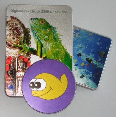 geckoPAC bietet jetzt auch für Klein-Serien ab 100 Stück die Bedruckung von Promotionverpackungen in Form von Blechdosen an. Hierbei werden Spezial-Tinten eingesetzt, die nach dem Bedruckungsvorgang in einem Ofen eingebrannt werden.