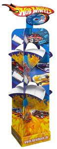 Komplizierte und zeitraubende Montagen von Bodendisplays im Handelskanal gehören der Vergangenheit an. Dafür sorgt die Schelling AG mit dem cleveren Bodendisplay Hot Wheels, welcher am Verkaufspunkt sehr schnell bereit steht. Das Display besteht lediglich aus drei Teilen: Boden-Tray, vorgeklebte Schütten und Aufstecker.