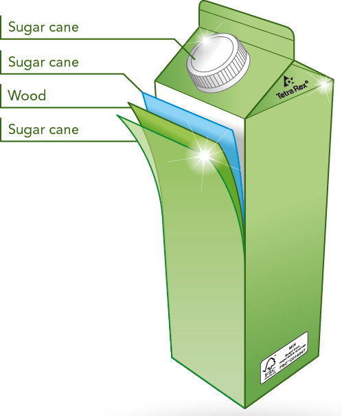Die Einführung der weltweit ersten ausschliesslich aus pflanzlichen Materialien hergestellten Kartonverpackung ging Mitte Januar 2015 in finnischen Einzelhandelsgeschäften über die Bühne. Die Milchgetränke in vollständig nachwachsenden Getränkepackungen werden vom Molkereibetrieb Valio angeboten. Die bio-basierte Tetra Rex® besteht zu 100 Prozent aus erneuerbaren Rohstoffen und ist am Aufdruck «bio-basiert» auf dem Giebeldach erkennbar. Tetra Pak hat sich vor langem dem Ziel verpflichtet, das Umweltprofil ihres gesamten Produktportfolios sowie aller ihrer Tätigkeiten weiter zu verbessern. Vor diesem Hintergrund ist die neue, aus pflanzenbasierten Kunststoffen und Karton bestehende Verpackung ein bedeutender Meilenstein. Für die Beschichtung des Verpackungsmaterials sowie für den Verschlusshals kommt hier Polyethylen niedriger Dichte zum Einsatz, während die Verschlusskappe aus Polyethylen hoher Dichte besteht. Alle bio-basierten Kunststoffmaterialien werden aus Zuckerrohr hergestellt. Hauptbestandteil der neuen Verpackung ist Rohkarton aus Holz, das durch den Forest Stewardship Council (FSC) zertifiziert ist. Die Kunststoffe können ebenso wie der FSC-zertifizierte Karton bis zu ihrem Ursprung zurückverfolgt werden.
