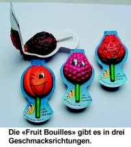 Eine neue Köstlichkeit erfreut seit kurzem die Kinder in Frankreich. Die «Fruit Bouilles» sind Fruchtlutscher in Geschmacksrichtungen Erdbeere, Aprikose und Himbeere, welche zwischen 22 und 40 Prozent Fruchtfleisch enthalten.