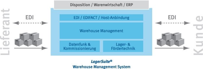 LagerSuite® führt, steuert und optimiert alle Prozesse in der Intralogistik und lässt sich durch die offene Architektur nahtlos in die bestehende Umgebung einbetten. Datenfunk ermöglicht die mobile Benutzerführung und beleglose Kommissionierung (mobile Terminals, pick-by-voice, pick-to-light). Die Nutzung von Identifikationstechniken wie Barcode oder RFID steigert die Prozessqualität zusätzlich. Als zentraler Lagerleitstand liefert LagerSuite® Logistikkennzahlen, erhöht die Transparenz und Nachvollziehbarkeit. Der Aufwand für Inventur und Reporting reduziert sich drastisch, Bestandssicherheit und Lieferqualität werden nachhaltig gesteigert. Die Software-Lösung zeichnet sich aus durch spezielle Funktionen für Logistikdienstleister, Handel und fertigende Industrie.