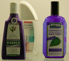 Blick in die Vitrine der Kunststoff-Packungen AG auf der Pack it 01 in Basel: effektvolle PET-Flaschen für Körperpflegeprodukte.
