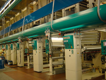 In Kreuzlingen werden die notwendigen Vorarbeiten geleistet wie das Bedrucken und Kaschieren von Aluminiumverbunden und Ceramis, dem von Lawson Mardon Neher entwickelten transparenten Hochbarrierematerial auf Basis von Siliciumoxid. Dafür investierte Neher in einen Fabrikationsausbau mit hochmodernem Maschinenpark: 8,1 Mio. Franken in eine 10-Farben-Tiefdruckmaschine mit Inline-Kaschierstation, 5,1 Mio. Franken in eine Kaschier- und 1,6 Mio. Franken in eine Rollenschneidmaschine. Auf dem neusten Stand der Technik ist auch die dazugehörige Infrastruktur, die ein automatisches Druckzylinderlager, eine computergesteuerte Dosieranlage zur Mischung von Druckfarben und Kaschierklebern, ein Waschcenter sowie ein Warmlager umfasst. Das Bild zeigt die Tiefdruckmaschine, auf der maximale Bahnbreiten von 1350 mm bei einer Geschwindigkeit von bis zu 400 m/Min. gefahren werden können.