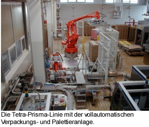 Kürzlich wurde bei Emmi in Luzern eine vollautomatische Abfüll-, Verpackungs- und Palettieranlage für Tetra-Prisma-Aseptic-Packungen in Betrieb genommen. Das Besondere bei dieser von der Zürcher ABB Flexible Automation realisierten Anlage liegt nebst dem Verpackungs-Handling vor allem im Steuern eines komplexen Mixes unterschiedlicher Verpackungseinheiten mit extrem hoher Leistung. Erreicht wird dies durch die geschickte Kombination und Steuerung von mehreren Warenzuführlinien und der Integration von zwei steuerungstechnisch exakt aufeinander abgestimmten Hochleistungsrobotern. Die ganze Hochleistungsanlage, welche für bis zu 81000 Verpackungen pro Stunde ausgelegt ist, wurde in der Winterausgabe 1999/2000 der swisspack international detailiert beschrieben. Die Verpackungen liefert Tetra Pak (Schweiz) AG.