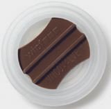 benötigt wird, was zu einer schonenden Siegelung und zu regelmässigeren Siegelnähten führt. Bei WICOVALVE-Ventil W103 kann die Ultraschallsiegelung optimal realisiert werden. Zu diesem Zweck ist das aus einem relativ steifen Polyethylen gefertigte Ventil mit einer speziellen Materialerhöhung ausgestattet. Im allgemeinen Prozess an der Abpackanlage ändert sich nicht viel. Das Ventil wird auch hier auf die Materialbahn geführt, bevor die Maschine mit dem Formen und Schweissen der Folie beginnt. Die Bilder zeigen die Vorder- und die Rückseite des Ultraschallventils W103 sowie die vertikale Schlauchbeutelmaschine mit nachgerüstetem Ultraschall-Applikator.